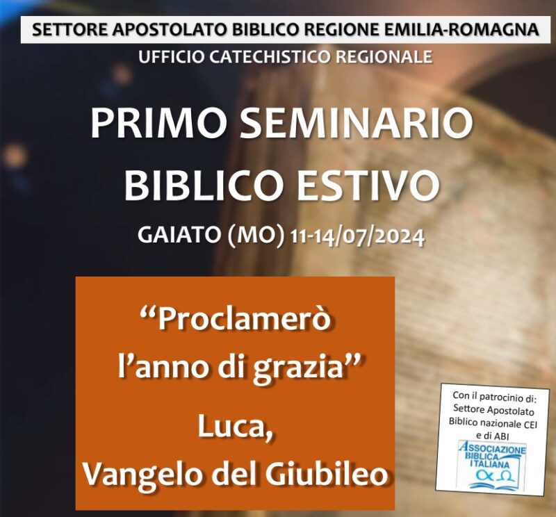 Il Settore Apostolato Biblico e l’Ufficio catechistico della regione Emilia-Romagna organizzano il primo seminario biblico estivo. Tra i relatori anche i docenti dell’ISSR dell’Emilia: Claudio Arletti, Laura Bernardi e Giacomo Violi. QUI tutte le informazioni.