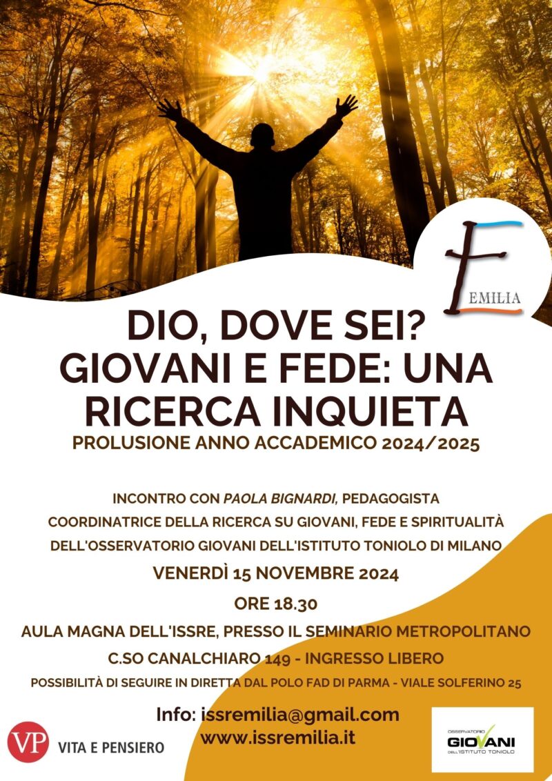 La prolusione si svolgerà venerdì 15 novembre 2024 alle ore 18.30 presso l’Aula magna dell’ISSRE, Corso Canalchiaro 149, Modena.