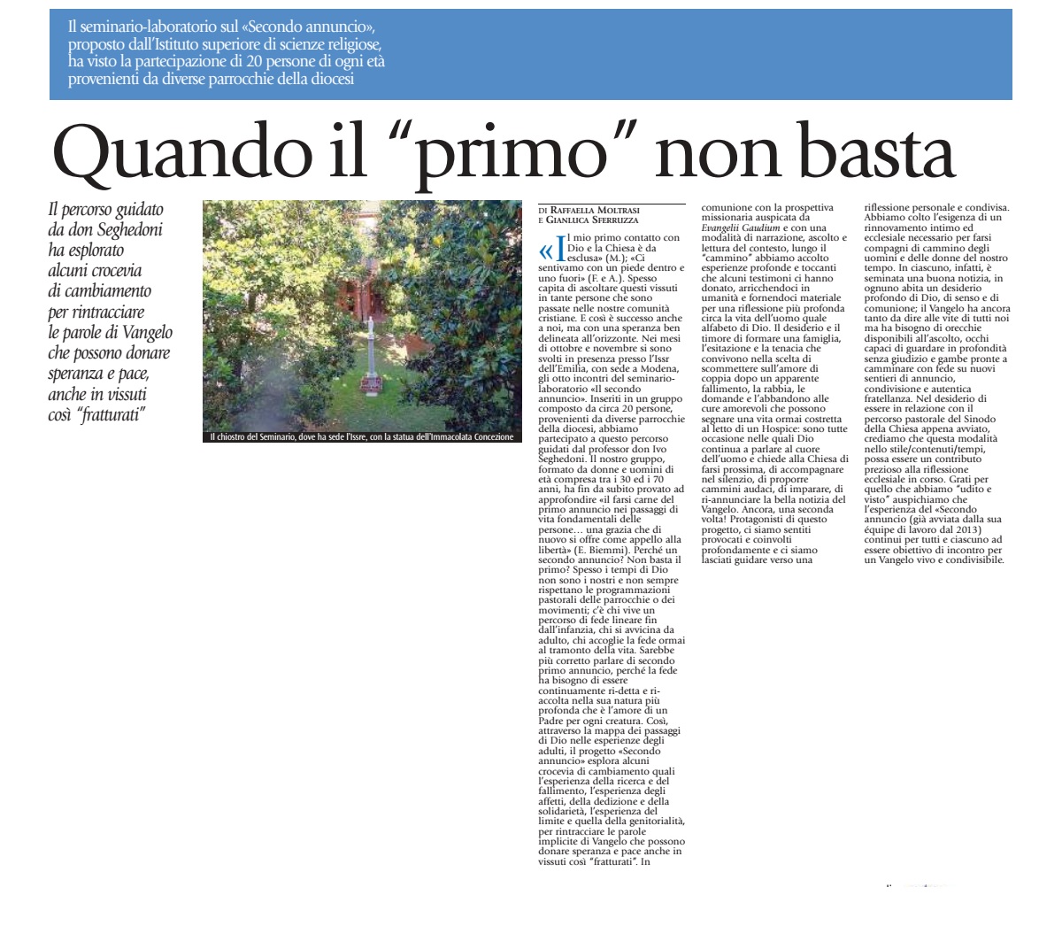 I docenti Raffaella Moltrasi e Gianluca Sferruzza illustrano la loro esperienza come partecipanti al corso laboratoriale tenuto dal prof. Ivo Seghedoni sul “Secondo annuncio” .